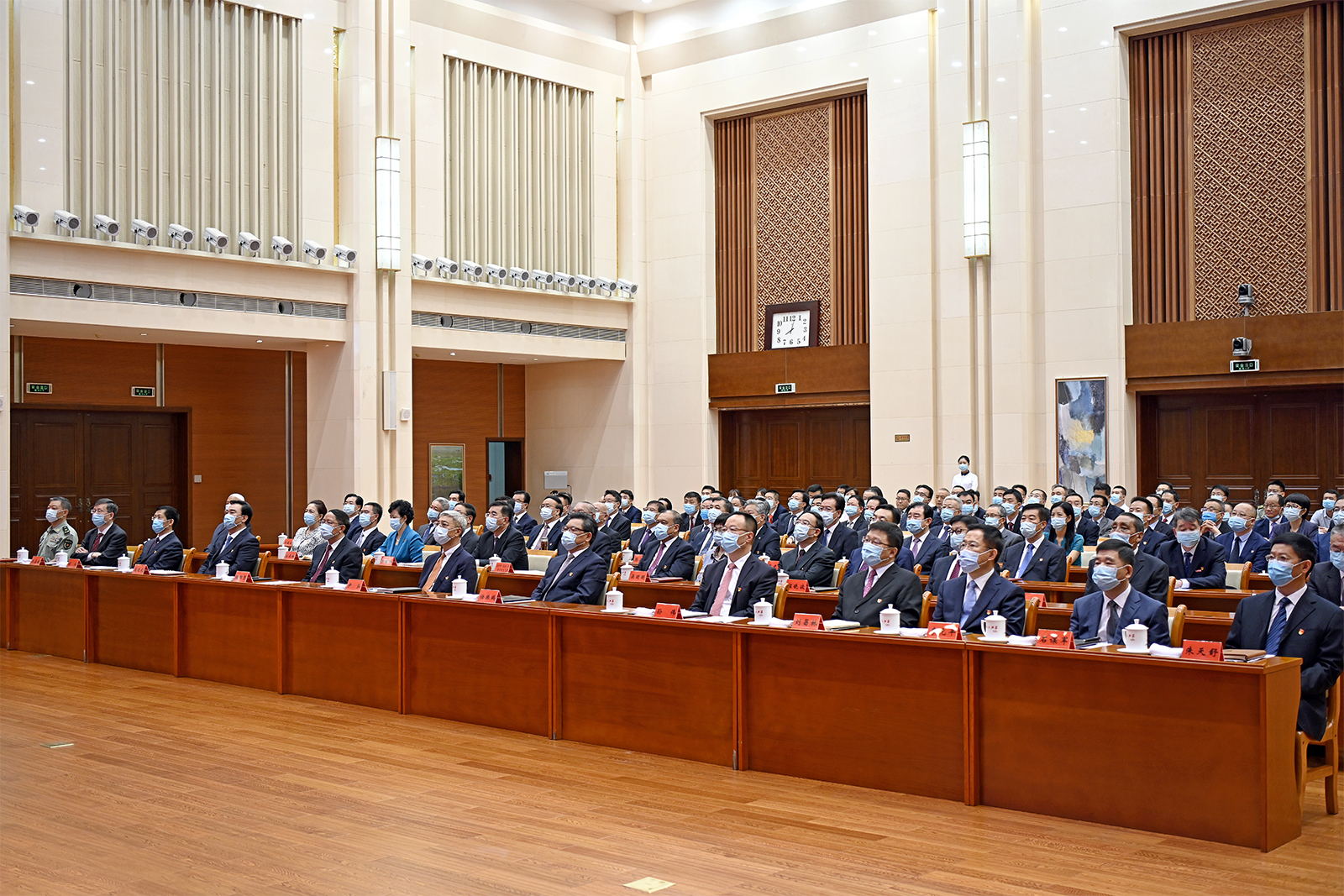 7時(shi)53分許,在歡快的(de)(de)樂曲聲(sheng)中(zhong)(zhong),習(xi)(xi)近平(ping)(ping)等黨(dang)和(he)國(guo)家領導人來到(dao)天安門(men)城樓主席臺(tai),會場爆(bao)發出熱烈(lie)的(de)(de)掌(zhang)(zhang)聲(sheng)。8時(shi)整,慶祝(zhu)大會開始(shi),中(zhong)(zhong)國(guo)人民(min)解放軍聯(lian)合軍樂團奏響(xiang)雄(xiong)壯的(de)(de)《義勇軍進行曲》,尹弘、任振鶴等全(quan)體起(qi)立,隨北京現場一起(qi)高唱中(zhong)(zhong)華人民(min)共和(he)國(guo)國(guo)歌,目視(shi)大屏幕里鮮艷奪目的(de)(de)五星(xing)紅旗冉(ran)(ran)冉(ran)(ran)升起(qi),在天安門(men)廣場上空迎風飄(piao)揚。在熱烈(lie)的(de)(de)掌(zhang)(zhang)聲(sheng)中(zhong)(zhong),習(xi)(xi)近平(ping)(ping)總書記發表重要(yao)講話(hua),大家認真(zhen)聆聽、專(zhuan)心筆記,第一時(shi)間深刻(ke)學習(xi)(xi)領會,不時(shi)報以熱烈(lie)的(de)(de)掌(zhang)(zhang)聲(sheng)。