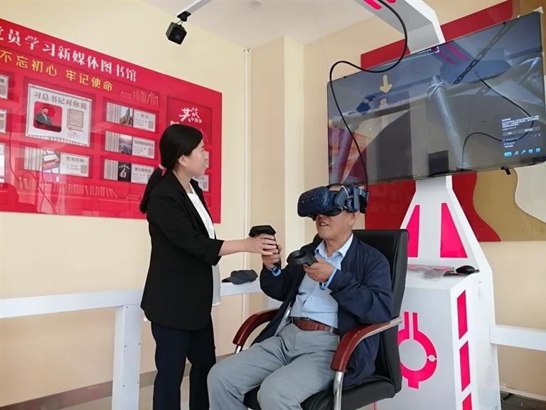 老(lao)黨員體驗VR黨建學習平臺(tai) 張建平 攝