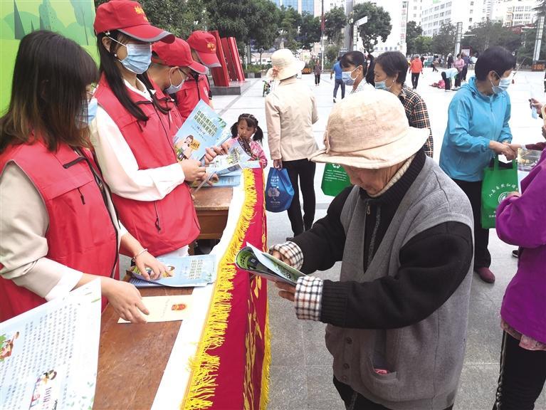 志(zhi)愿者發放宣傳資(zi)料 楊(yang)貴智 攝