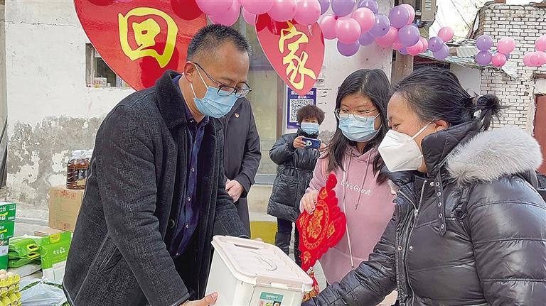中國甘肅網11月23日訊 據蘭州晚報報道(記者 趙雨欣 攝)五泉街(jie)道(dao)、蘭(lan)山村社區的工(gong)作人員迎接解(jie)除集中隔離的17戶居民回家