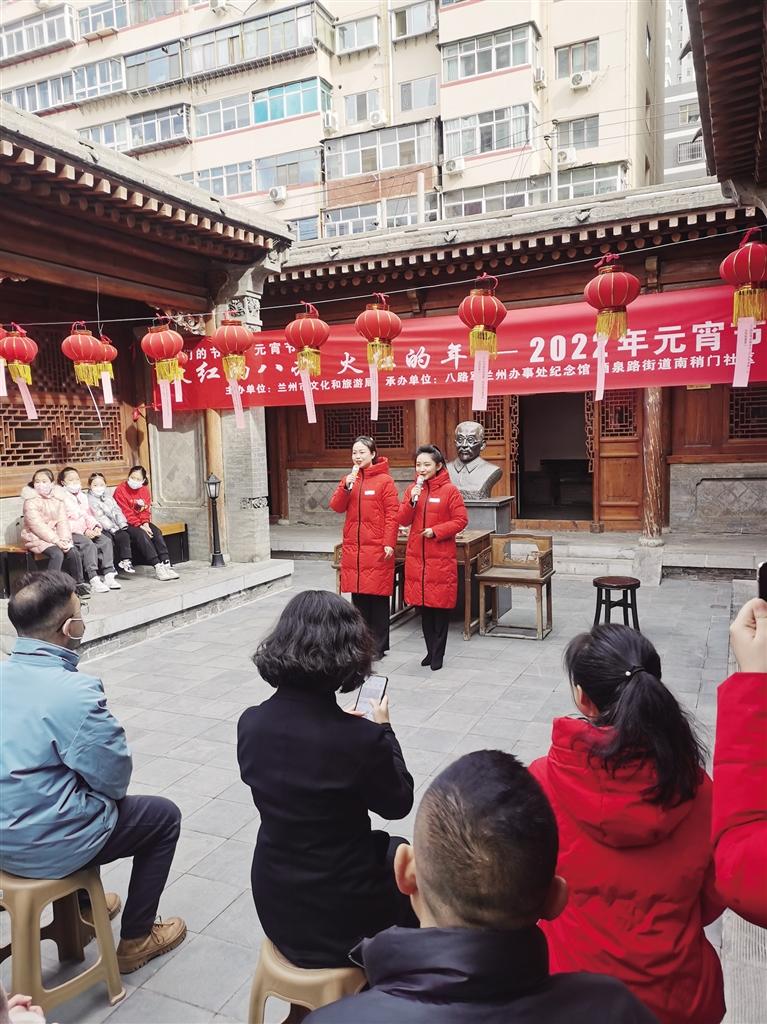2月14日,在喜迎元宵(xiao)(xiao)佳節(jie)之(zhi)際(ji),由蘭州市文化和旅游局主辦(ban)(ban)的“火紅(hong)(hong)的八辦(ban)(ban)火紅(hong)(hong)的年(nian) 民(min)族團結一(yi)家親”——2022年(nian)元宵(xiao)(xiao)節(jie)主題(ti)活動(dong)在位于酒泉(quan)路(lu)的八路(lu)軍蘭州辦(ban)(ban)事處紀(ji)念館舉行。來自(zi)酒泉(quan)路(lu)街道南稍(shao)門社區(qu)、南關(guan)民(min)族風味一(yi)條(tiao)街的市民(min)代表與蘭州八辦(ban)(ban)工(gong)作人員及紅(hong)(hong)色小志愿(yuan)者近百(bai)余人齊聚一(yi)堂,共同“憶黨史、話冬奧、猜燈謎、慶(qing)元宵(xiao)(xiao)、唱紅(hong)(hong)歌(ge)”。
