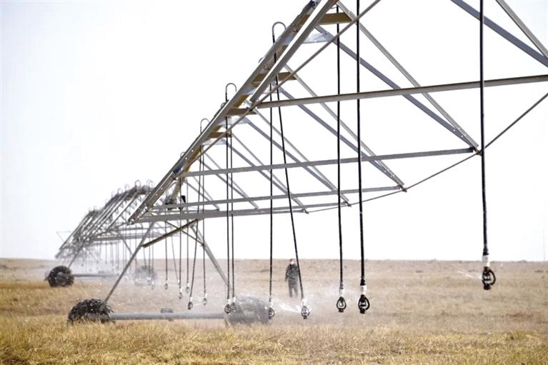 在農投集(ji)團現(xian)代牧草休閑示范(fan)園項目,平整一(yi)(yi)新的(de)(de)2.3萬畝土(tu)地(di)上(shang),3組(zu)大型噴灌設備(bei)(bei)已(yi)經(jing)投入緊(jin)張的(de)(de)工(gong)作(zuo)中(zhong),隨著工(gong)作(zuo)人員(yuan)啟動設備(bei)(bei),噴灌機所過之處土(tu)地(di)一(yi)(yi)片濕潤,空氣中(zhong)充滿了泥土(tu)的(de)(de)清新。據現(xian)場負責人介紹,連(lian)續幾日,他們(men)都(dou)在緊(jin)鑼密鼓開展春灌工(gong)作(zuo),利(li)用大型噴灌設備(bei)(bei),不(bu)僅實(shi)現(xian)了水資源的(de)(de)高效利(li)用,而(er)且減少了人力投入,工(gong)作(zuo)效率更高。
