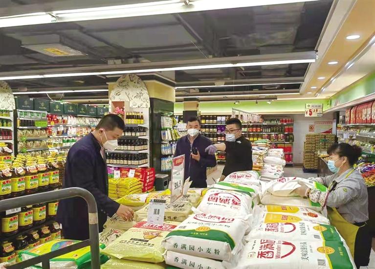蘭州市糧(liang)食與物資儲備局工作(zuo)人(ren)員檢查糧(liang)油市場(chang) 李丹 攝(she)