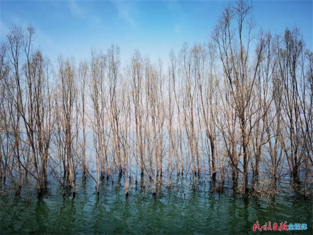 在岸邊,可(ke)以看到10公里的(de)柳樹(shu)(shu)(shu)“站”在水中,根連著根,枝連著枝。這些高大(da)的(de)柳樹(shu)(shu)(shu),不僅減緩了水面(mian)上(shang)襲(xi)來的(de)風浪,形成第一(yi)道保護“堤(di)壩”,還成為一(yi)道亮麗的(de)風景線——倒映在湖面(mian)上(shang)的(de)樹(shu)(shu)(shu)木婀娜多姿,鳥兒在樹(shu)(shu)(shu)杈上(shang)筑巢棲息(xi),魚兒在樹(shu)(shu)(shu)下游玩,好一(yi)幅(fu)綿長的(de)水鄉(xiang)畫卷。