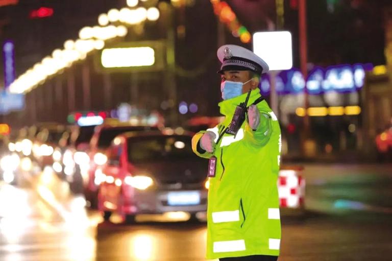 交警指揮交通(tong) 伊(yi)曉(xiao)明 攝