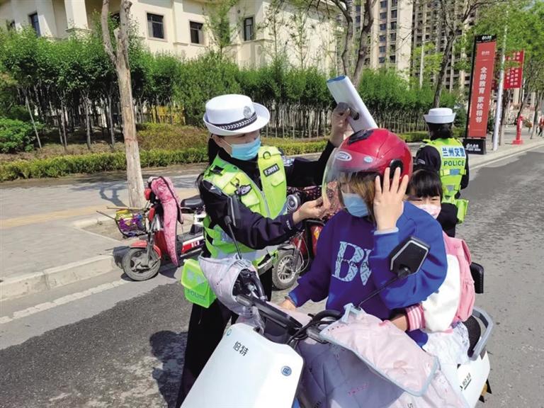 為市民戴好頭盔 葛 強(qiang) 攝(she)