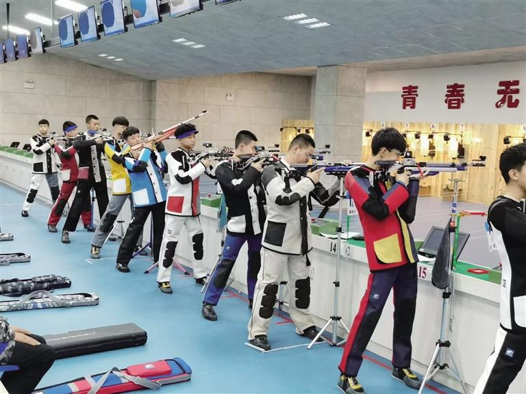 中國甘肅網5月24日訊 據蘭州日報報道(記者 孔德勝 攝)甘肅省第十五(wu)屆(jie)(jie)運動會(hui)首個項目(mu)射擊比賽(sai)(sai)(sai)23日在蘭(lan)州(zhou)市體育運動學校開賽(sai)(sai)(sai),這也揭開了本屆(jie)(jie)省運會(hui)的(de)大幕,首日比賽(sai)(sai)(sai)蘭(lan)州(zhou)市代表團收獲5金2銅。圖為男子乙組10米氣步槍60發(fa)團體賽(sai)(sai)(sai)。