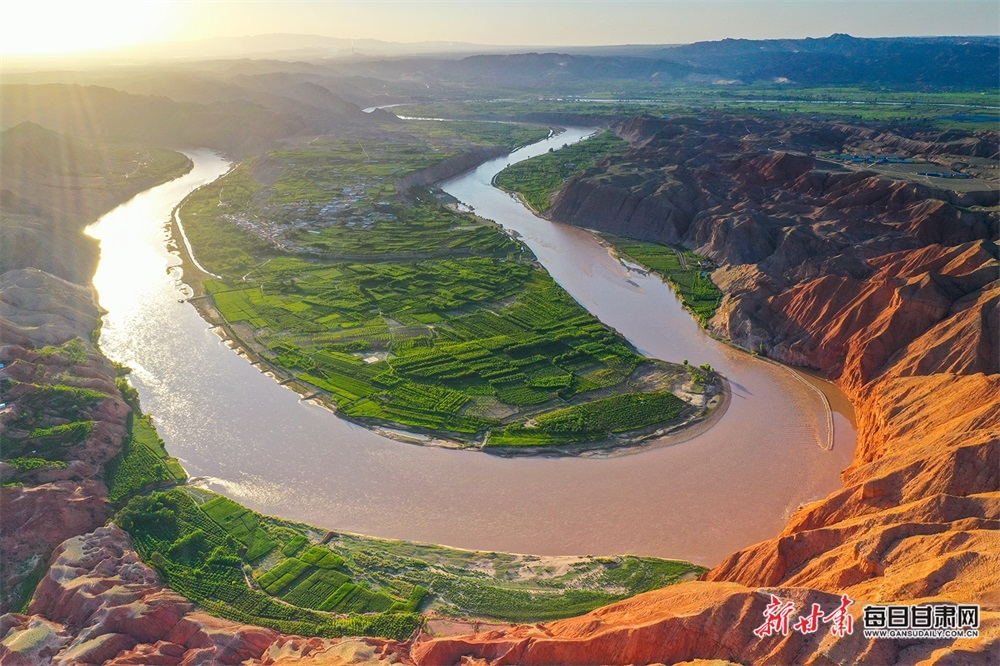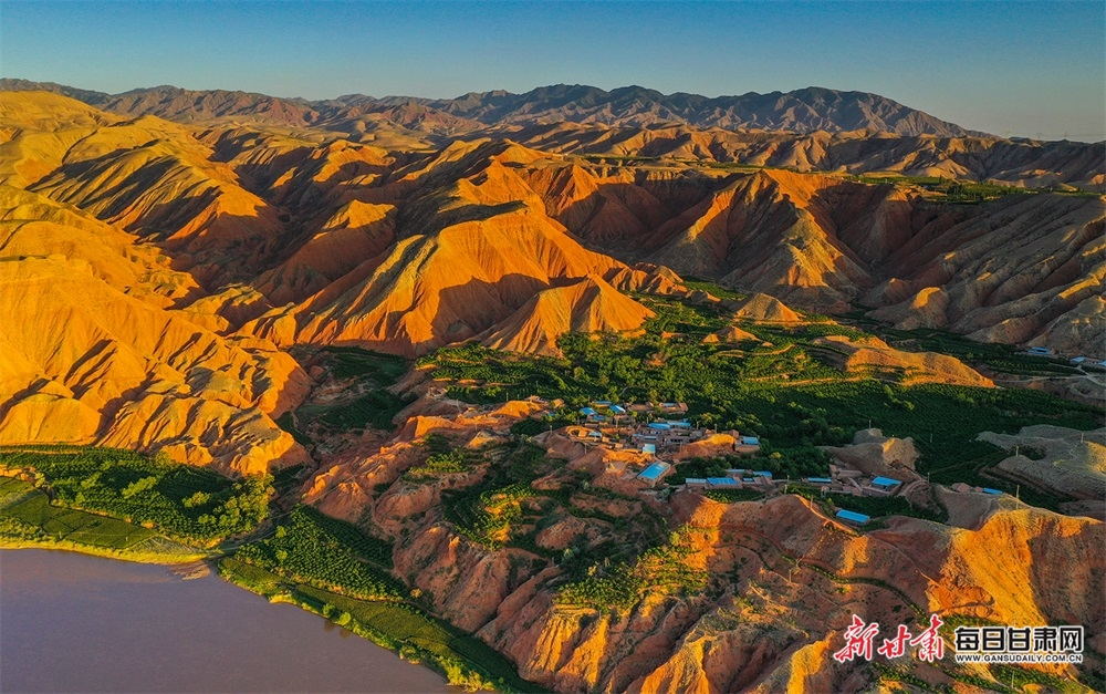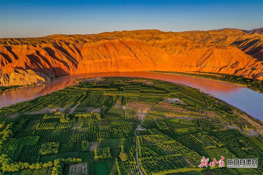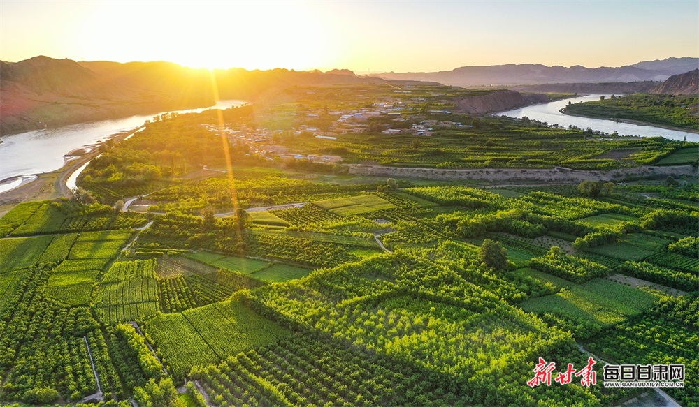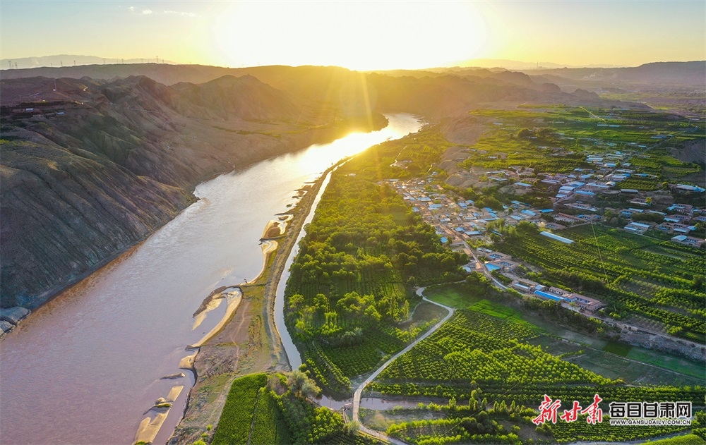 夏日,夕陽西下,黃(huang)河(he)在景泰五佛鄉境內的車(che)(che)木(mu)峽繞了個大大的彎,位(wei)于黃(huang)河(he)峽谷中的 車(che)(che)木(mu)峽山村高山環繞,周圍是成(cheng)片的樹林(lin),廣袤(mao)的田野閃耀著瑰麗的色彩,靜(jing)靜(jing)地躺在綠色的懷抱(bao)之中。