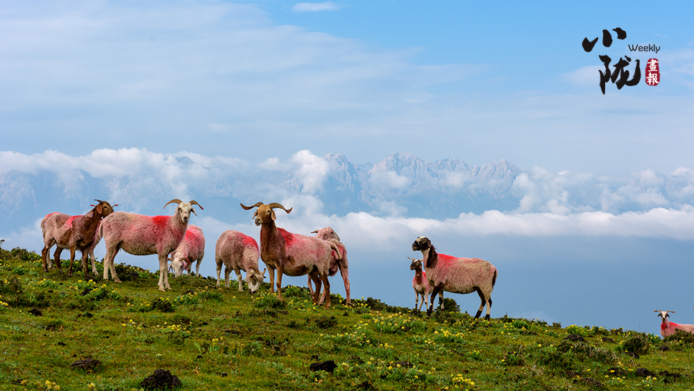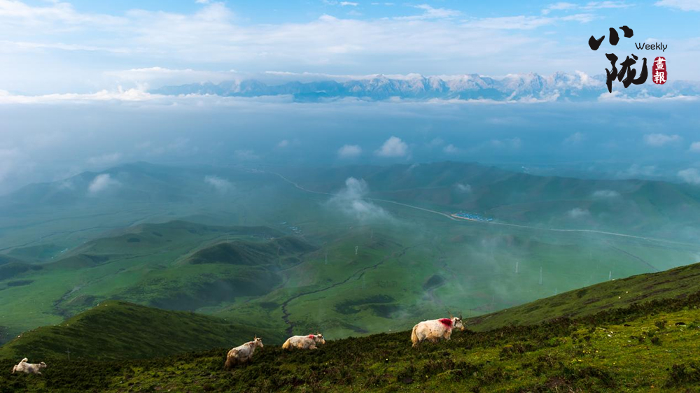山(shan)頂被譽(yu)為草原白(bai)珍珠的天祝白(bai)牦(mao)牛和羊群云中漫步,云下蔥蘢牧場若隱若現,一幅水墨山(shan)水畫(hua)卷徐(xu)徐(xu)呈現在眼前。