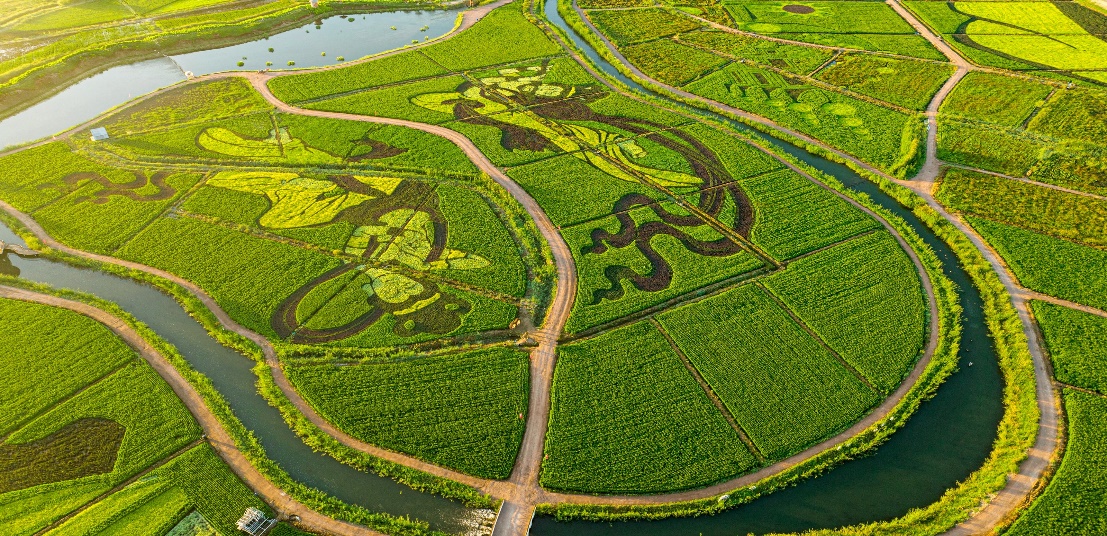 新河田(tian)園(yuan)綜(zong)合體(ti)稻(dao)田(tian)景觀區(qu)位(wei)于(yu)甘肅省(sheng)張掖市甘州(zhou)區(qu)烏江(jiang)(jiang)鎮元(yuan)豐村,利用當地得天(tian)獨(du)厚的水土資(zi)源和(he)獨(du)具特(te)色的烏江(jiang)(jiang)貢(gong)米文化,將農業(ye)與藝術相(xiang)融(rong)合,利用彩稻(dao)種(zhong)植成具有濃郁絲路風情(qing)、塞上江(jiang)(jiang)南等元(yuan)素(su)稻(dao)田(tian)巨型畫作,再現綠色甘州(zhou)稻(dao)浪,助力鄉村旅游和(he)鄉村振興。