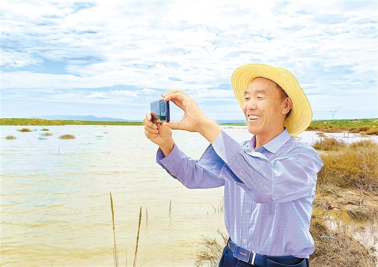 郭萬(wan)剛(gang)格外珍惜這一灘(tan)湖(hu)水,他沿著水岸走了(le)很久,還(huan)不時地用手(shou)機(ji)拍照(zhao),他認為(wei)這是大自然對(dui)古浪持(chi)續開展生(sheng)態建(jian)設的回報(bao)。“我今(jin)年70歲(sui)了(le),這是我第一次在這片沙(sha)漠里(li)見到湖(hu)泊(bo),給它取名‘紅(hong)沙(sha)湖(hu)’,希望它像沙(sha)漠里(li)的紅(hong)柳一樣永遠(yuan)充(chong)滿生(sheng)機(ji),不要干涸。”郭萬(wan)剛(gang)說。
