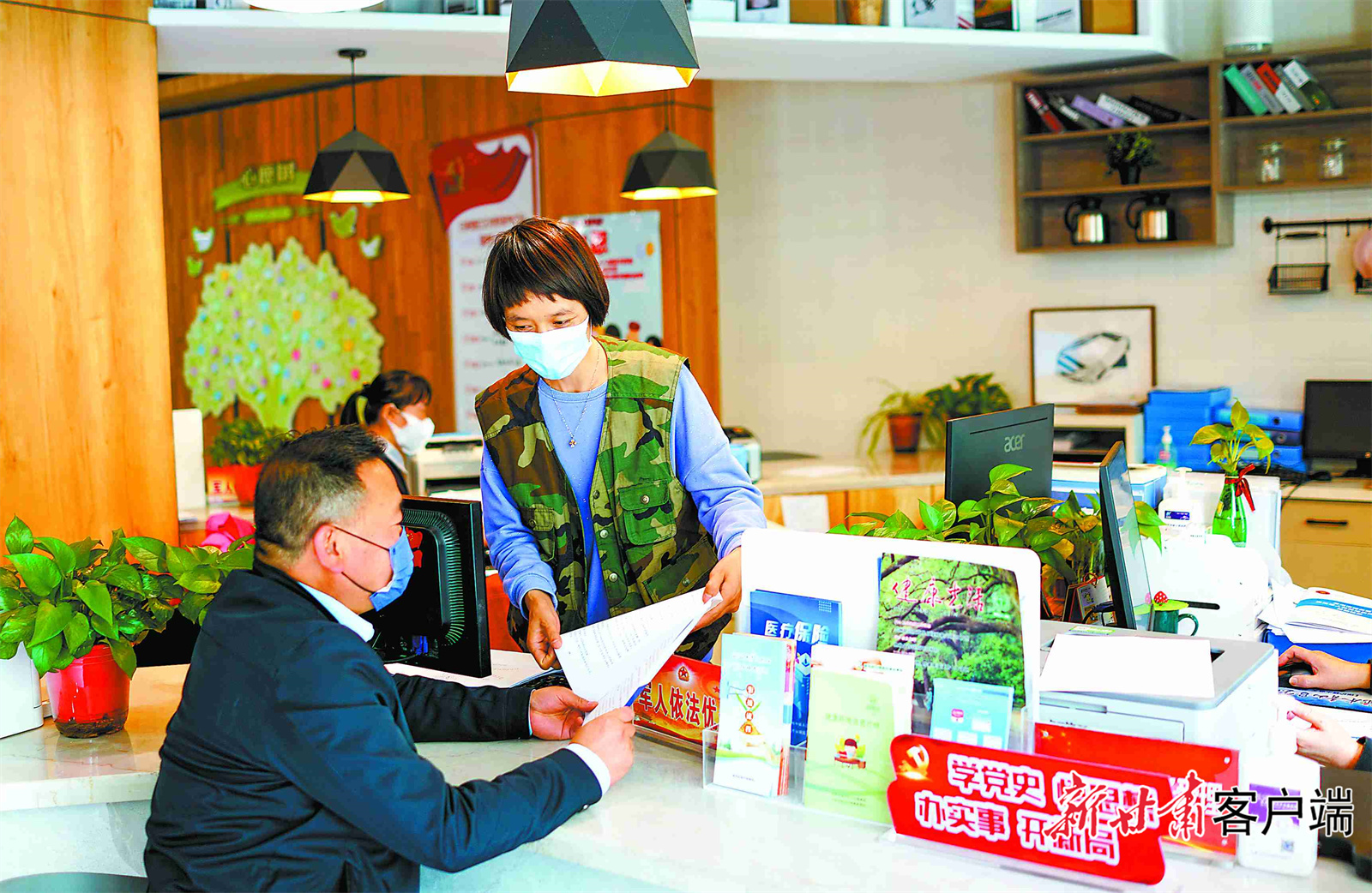 蘭(lan)州(zhou)市城(cheng)關區(qu)白銀路街(jie)道甘家巷社區(qu)全科受理(li)臺上(shang),社區(qu)工作(zuo)人(ren)員熱情解答辦事群眾提(ti)出的問題。