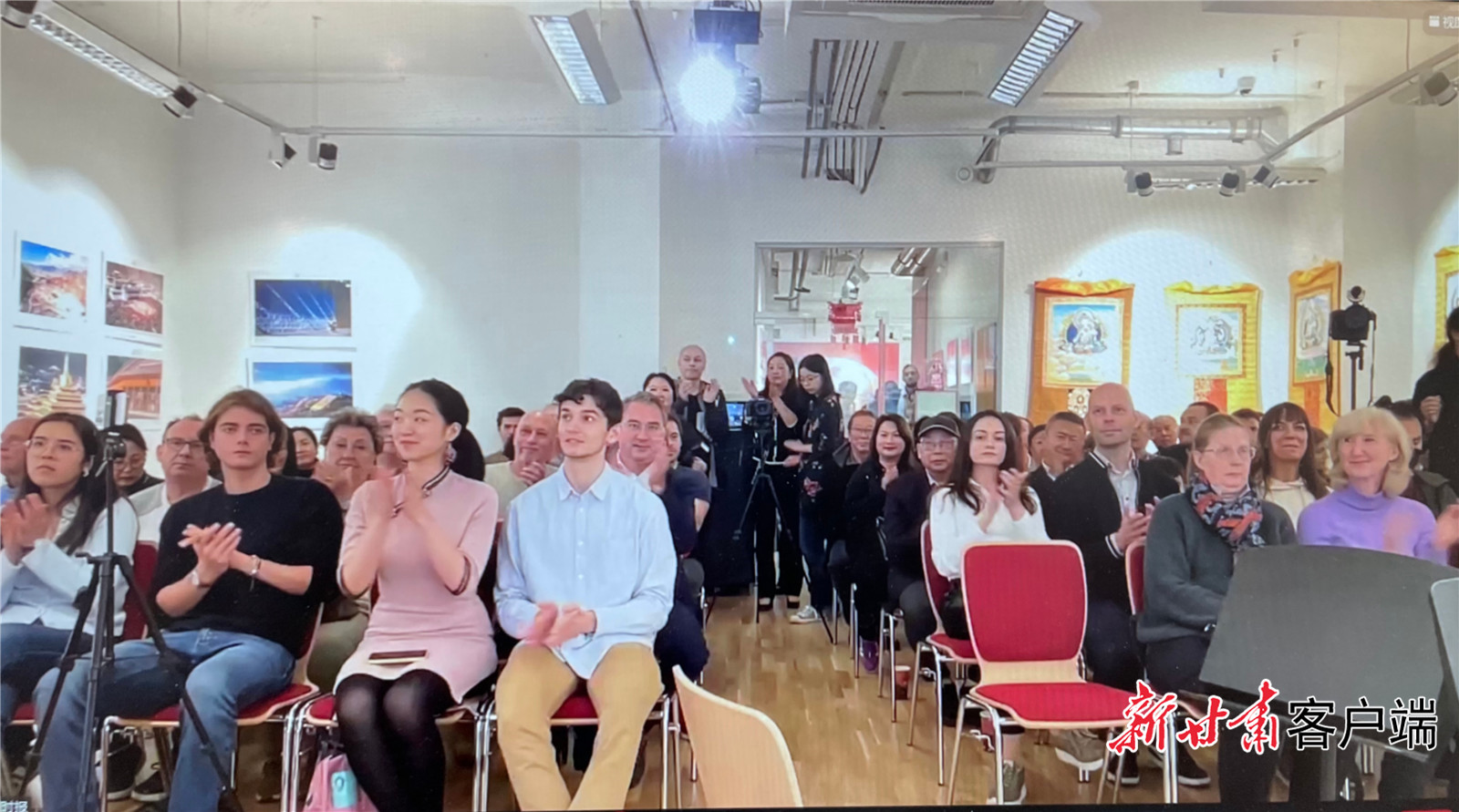 在奧地利維也納參會觀(guan)眾正在收看(kan)原(yuan)創MV《我畫個甘肅給(gei)你看(kan)下》。