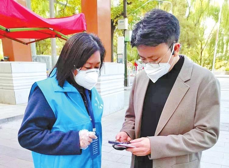 薩仁娜(na)認真(zhen)查驗小(xiao)區進出人員健康碼