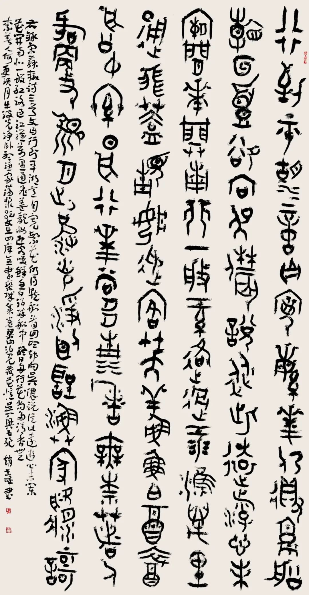 此次展覽展出(chu)的(de)(de)184件八尺(chi)大幅書法(fa)作(zuo)(zuo)(zuo)品(pin),主(zhu)題(ti)鮮明(ming),諸體(ti)(ti)兼(jian)備。五體(ti)(ti)占比(bi)平衡,一改過去篆書篆刻(ke)作(zuo)(zuo)(zuo)品(pin)少、好作(zuo)(zuo)(zuo)品(pin)更少的(de)(de)局面。書法(fa)家(jia)(jia)區別于他人(ren)的(de)(de)不(bu)同(tong)之(zhi)處,在于書法(fa)家(jia)(jia)是用點(dian)畫結體(ti)(ti)和(he)章法(fa)中的(de)(de)各種對比(bi)關系(xi)和(he)形勢變(bian)化來觀察世界(jie)(jie)、認識世界(jie)(jie)和(he)表現世界(jie)(jie)的(de)(de),倡導(dao)注重日常書寫,將書法(fa)創作(zuo)(zuo)(zuo)變(bian)成(cheng)日常的(de)(de)書寫活動,變(bian)成(cheng)生活的(de)(de)一部分,不(bu)為(wei)創作(zuo)(zuo)(zuo)而(er)創作(zuo)(zuo)(zuo)。入選的(de)(de)作(zuo)(zuo)(zuo)者(zhe)以70后、80后、90后為(wei)主(zhu)體(ti)(ti),展現出(chu)甘肅書法(fa)的(de)(de)源遠流(liu)長、青藍(lan)相繼、賡續文脈。