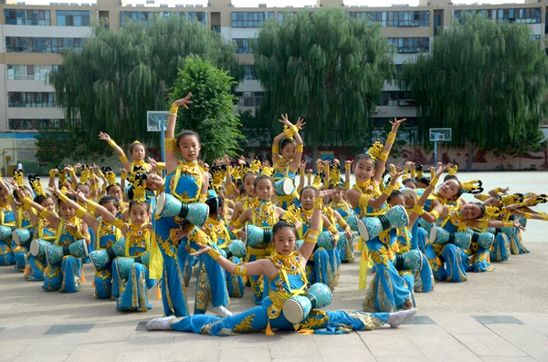 敦煌(huang)(huang)市(shi)南街小學學生排練(lian)舞蹈《鼓樂敦煌(huang)(huang)》。敦煌(huang)(huang)市(shi)委宣(xuan)傳部(bu)供圖