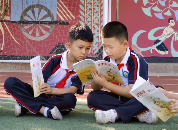 敦(dun)煌市(shi)南街小學學生在閱(yue)讀學生天(tian)地之(zhi)《敦(dun)煌文化進校園(yuan)》特(te)刊 。敦(dun)煌市(shi)委宣(xuan)傳部供圖