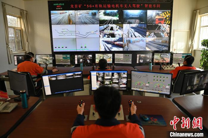 圖(tu)為(wei)金川(chuan)集團龍首礦“5G+有軌運輸電機車無人駕駛”智能(neng)車間內(nei),操作(zuo)員(yuan)正(zheng)在進行(xing)遠程控制。