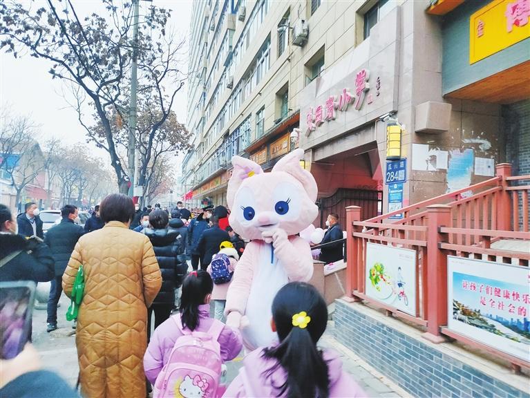 安西路小學(xue),萌寵玩偶(ou)迎接學(xue)生們。