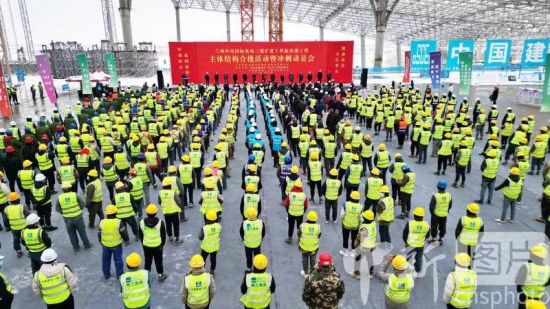2月18日,蘭州(zhou)中川國際機場(chang)三期擴(kuo)建工程(cheng)航(hang)站樓工程(cheng)主體(ti)結構合(he)攏活動暨沖刺動員(yuan)會(hui)在甘肅蘭州(zhou)新區舉行(xing)。圖為(wei)活動現場(chang)。 中新社記者 九美旦增 攝(she)