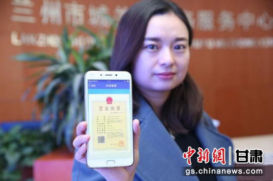 圖為蘭州(zhou)一家公(gong)司代表展示(shi)申領(ling)的電(dian)子營業執照。(資料圖) 史靜靜 攝(she)
