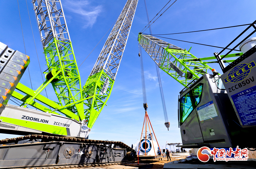 2月21日,張掖市臨澤縣平川北灘(tan)30萬(wan)千(qian)瓦風電項目建設現場,工作人員(yuan)正(zheng)在進行主機(ji)吊裝。