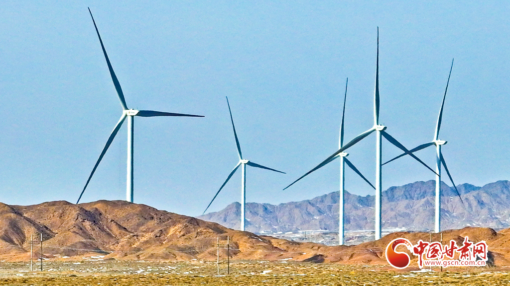 2月(yue)21日,張掖市臨澤縣(xian)平川(chuan)北(bei)灘30萬千瓦風(feng)電項(xiang)目建設現場,已建成的風(feng)電機組。