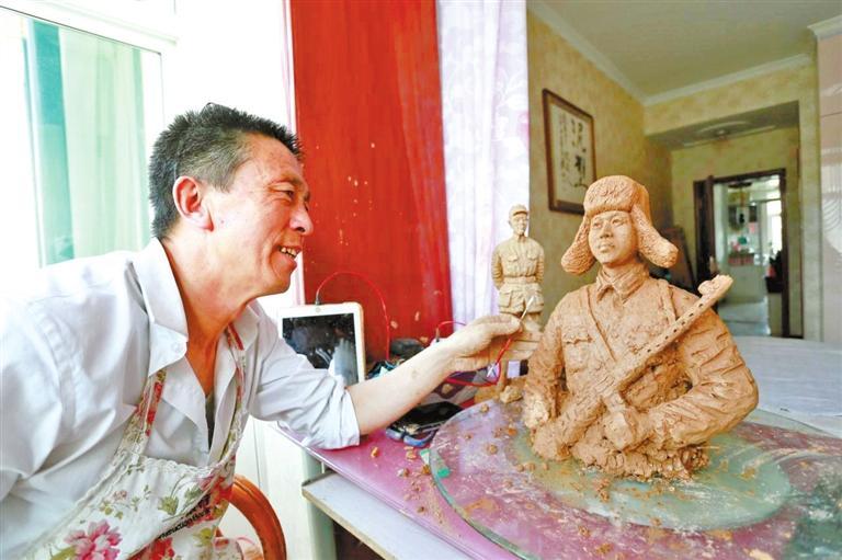 弘揚雷鋒精神 平涼一職工泥塑“雷鋒像”