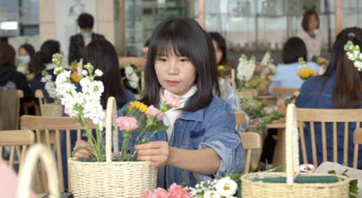 繁(fan)花(hua)(hua)(hua)(hua)似(si)錦報(bao)春來,天姿國色抒(shu)情懷。活動現(xian)場(chang)花(hua)(hua)(hua)(hua)香四(si)溢、芬芳溫馨,充滿著春天般的(de)氣息,大家手捧(peng)鮮花(hua)(hua)(hua)(hua),在花(hua)(hua)(hua)(hua)藝老師的(de)講解(jie)下,開(kai)始學(xue)習各種鮮花(hua)(hua)(hua)(hua)所蘊含的(de)花(hua)(hua)(hua)(hua)語祝福和(he)選花(hua)(hua)(hua)(hua)、裁剪(jian)、搭(da)配(pei)、造(zao)型及(ji)養護等藝術插花(hua)(hua)(hua)(hua)技巧。隨后,女(nv)工們將原本(ben)普(pu)普(pu)通通的(de)月季(ji)、康乃馨、蝴蝶蘭、滿天星、向日(ri)葵等多種花(hua)(hua)(hua)(hua)材修(xiu)剪(jian)整枝(zhi),根據(ju)不同的(de)色彩和(he)形狀有(you)(you)層(ceng)次地搭(da)配(pei)在一起。通過精(jing)心構思造(zao)型、發揮(hui)創(chuang)意(yi)想(xiang)象,有(you)(you)的(de)注(zhu)重(zhong)意(yi)境創(chuang)設追求,有(you)(you)的(de)突出枝(zhi)情花(hua)(hua)(hua)(hua)韻(yun)之趣,有(you)(you)的(de)抒(shu)展(zhan)自然樸(pu)實(shi)風格……在細致地修(xiu)飾(shi)和(he)精(jing)心地創(chuang)作下,一枝(zhi)花(hua)(hua)(hua)(hua)、一棵草都變(bian)得詩情畫意(yi)和(he)清新怡人(ren),節日(ri)的(de)喜慶氣氛(fen)瞬間升騰。