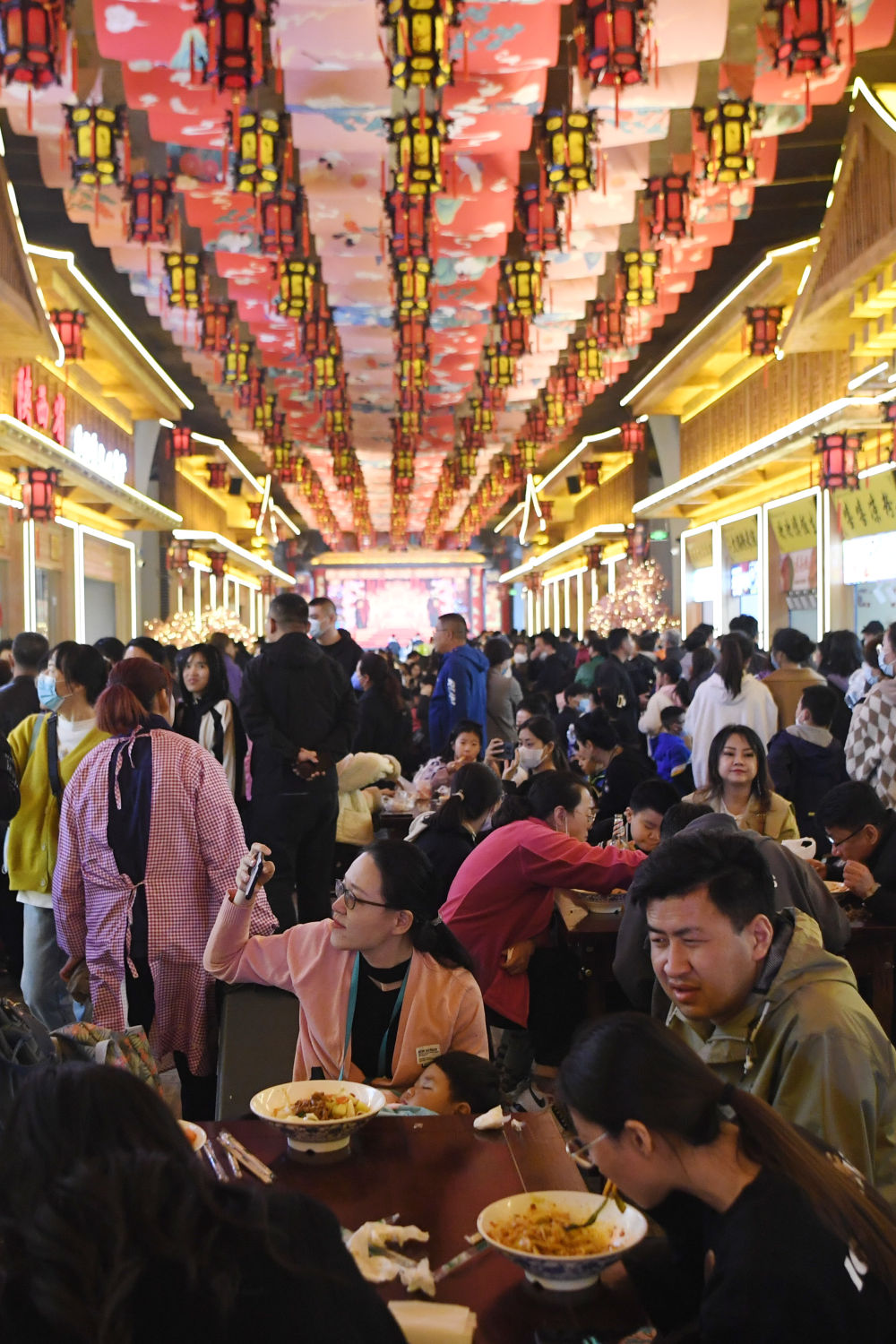 ↑3月25日,游客(ke)在“黃河食渡(du)文化夜市(shi)”休閑游覽。
