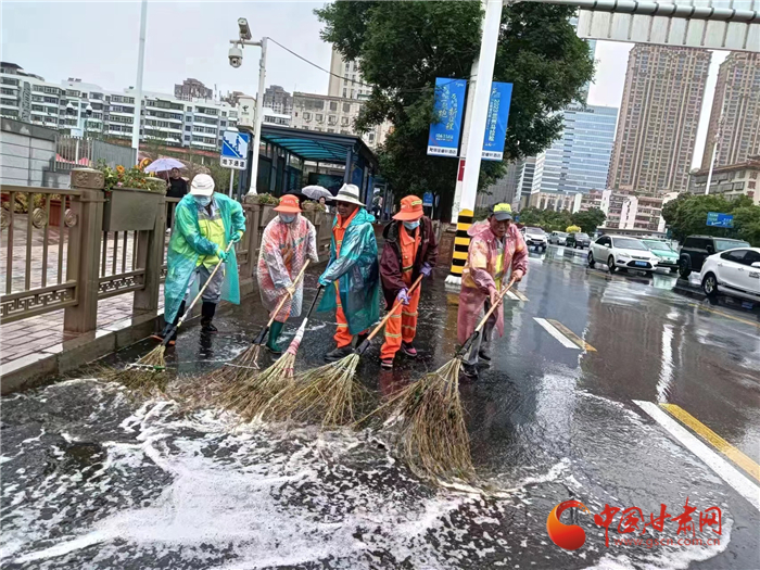 蘭州市出動環衛工人1.2萬余人次 開展道路排澇清淤工作