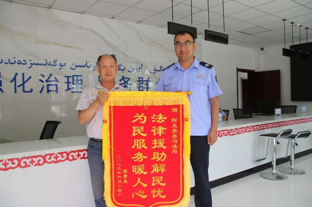 “謝謝你們,謝謝法(fa)(fa)律援助(zhu)(zhu),感謝黨和政府。”受(shou)援人梁某(mou)(mou)邊(bian)說(shuo)邊(bian)將印有“法(fa)(fa)律援助(zhu)(zhu)解民憂 為民服(fu)務暖人心”字樣的(de)(de)錦旗遞到(dao)酒(jiu)泉(quan)市阿克(ke)(ke)塞(sai)縣司法(fa)(fa)局(ju)工(gong)(gong)作人員(yuan)的(de)(de)手中,感謝在(zai)(zai)阿克(ke)(ke)塞(sai)縣司法(fa)(fa)局(ju)公共(gong)法(fa)(fa)律服(fu)務中心的(de)(de)幫助(zhu)(zhu)下(xia),及時拿到(dao)了(le)自(zi)己的(de)(de)勞(lao)動(dong)工(gong)(gong)資。據悉,梁某(mou)(mou)因(yin)生病(bing)需要治療,想到(dao)給某(mou)(mou)老板干活還未結清的(de)(de)工(gong)(gong)錢,于是梁某(mou)(mou)到(dao)公共(gong)法(fa)(fa)律服(fu)務中心咨詢(xun)法(fa)(fa)律援助(zhu)(zhu)事宜。工(gong)(gong)作人員(yuan)了(le)解梁某(mou)(mou)的(de)(de)情(qing)(qing)況后(hou),考(kao)慮到(dao)梁某(mou)(mou)的(de)(de)情(qing)(qing)況符合法(fa)(fa)律援助(zhu)(zhu)相關(guan)條件(jian),當即指派酒(jiu)泉(quan)紅柳律師事務所(suo)律師辦理此案,該案在(zai)(zai)律師的(de)(de)積極辦理下(xia)及時結案并勝訴,梁某(mou)(mou)如愿拿到(dao)了(le)勞(lao)動(dong)報酬。