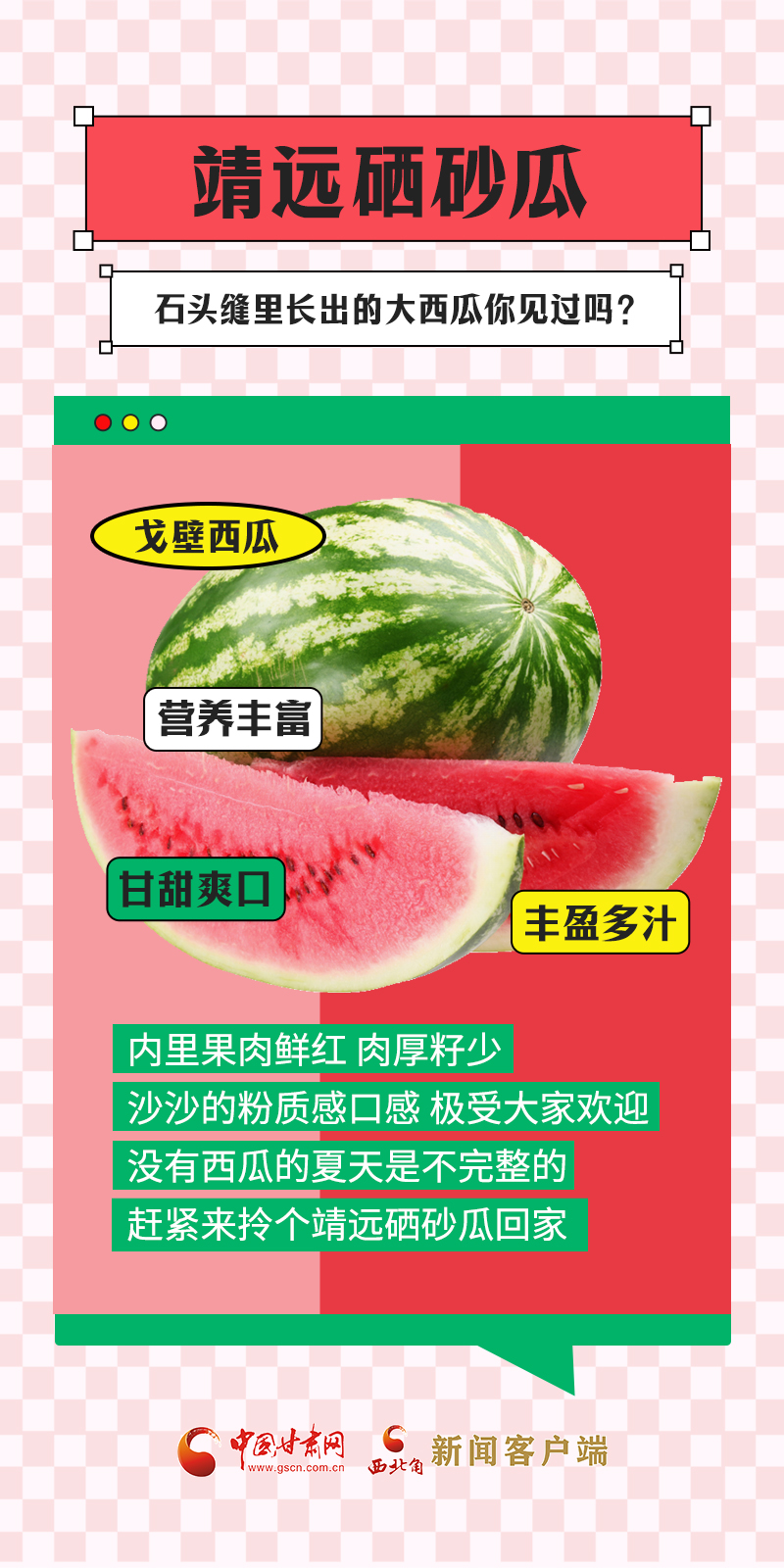 甘肅是中國自然地(di)理多樣的(de)省份(fen),從隴南一直(zhi)到(dao)敦煌,跨越了三大高原(yuan)地(di)帶、四(si)大氣(qi)(qi)候(hou)類型(xing),日照充足、干(gan)燥多風、降水量少、晝夜溫差大,這種獨特的(de)氣(qi)(qi)候(hou)特點,十分(fen)適宜水果(guo)(guo)的(de)生長。盛夏時(shi)節,甘肅各地(di)時(shi)令瓜果(guo)(guo)陸(lu)續上市(shi),不僅豐富了百姓的(de)“果(guo)(guo)盤子”,也鼓起了農民的(de)“錢袋子”。“瓜果(guo)(guo)經濟”在隴原(yuan)大地(di)上助力鄉村(cun)振(zhen)興(xing)。