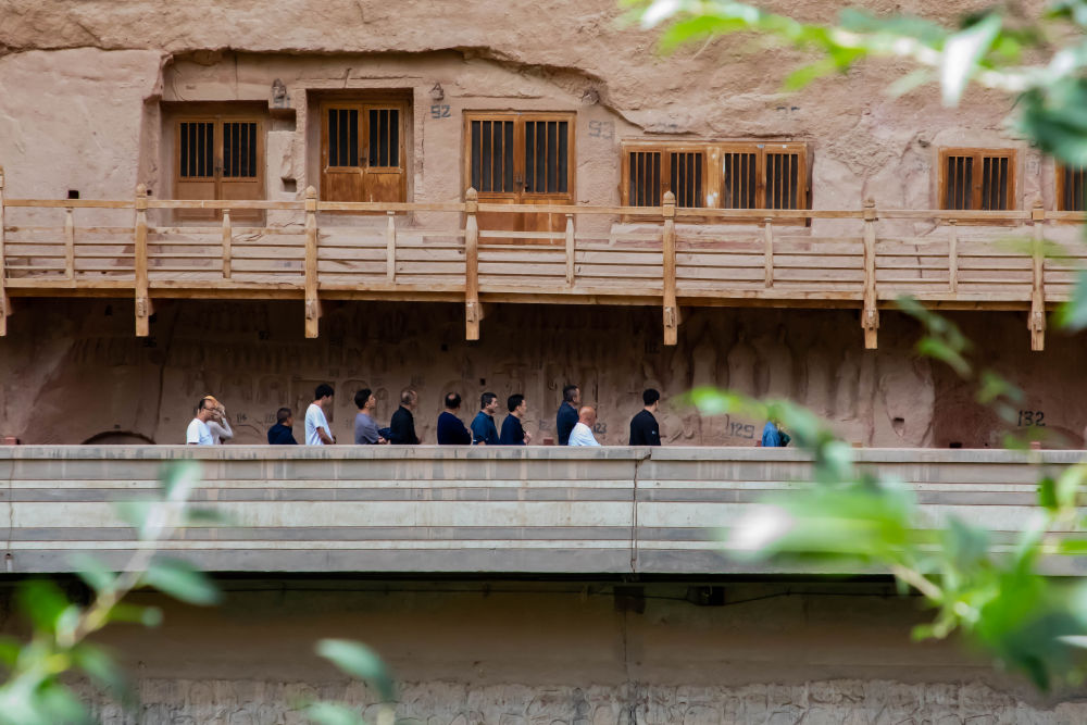 9月21日,游客(ke)在(zai)炳靈寺(si)石(shi)窟參觀。新華社記者 郎兵兵 攝