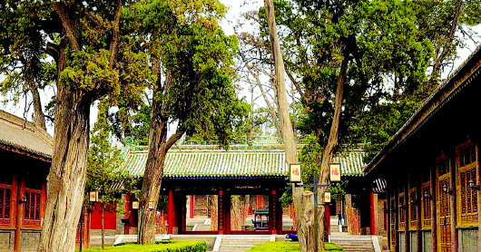 一進中院,豁然開闊。粗大的柏(bo)樹(shu)直沖天際,柏(bo)枝(zhi)濃密,遮天蔽(bi)日。這些側柏(bo)樹(shu)干皴(cun)裂,似歷(li)盡滄桑,而挺(ting)拔之勢,猶如飛龍在天。伏羲廟(miao)的柏(bo)樹(shu)按照六十四卦方位排列種植,歷(li)經千(qian)年(nian)風雨,仍有近半存活(huo),枝(zhi)繁葉(xie)茂,生(sheng)生(sheng)不息。先天殿就(jiu)掩(yan)映在這些生(sheng)長(chang)了幾(ji)百年(nian),乃至(zhi)上千(qian)年(nian)的古樹(shu)中。