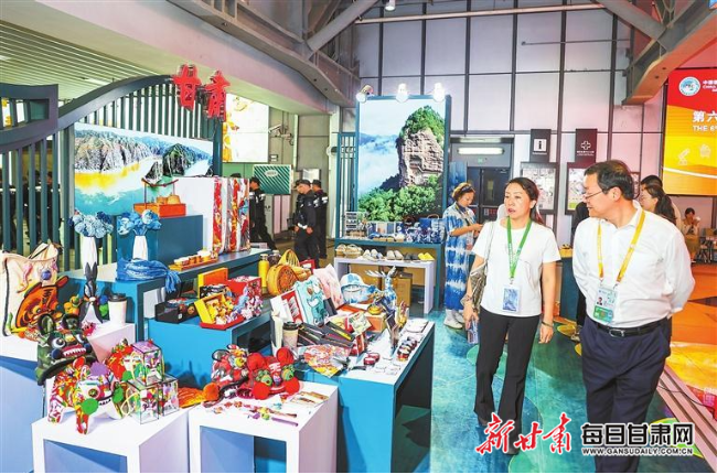 位于第六(liu)屆進博(bo)會人文交流(liu)展區的(de)甘(gan)肅省展區。 新甘(gan)肅·甘(gan)肅日(ri)報記者 馮樂凱