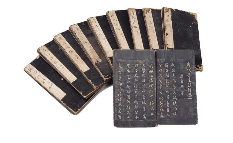 淳化閣帖(tie)(tie)是北宋王(wang)朝(chao)(chao)編(bian)印的我國歷史上第(di)一部大(da)型書藝法(fa)帖(tie)(tie),集宋朝(chao)(chao)以(yi)前書法(fa)藝術之大(da)成,印數不(bu)多且刻版毀于火,流傳帖(tie)(tie)本(ben)量少,十(shi)分珍貴(gui)。明王(wang)朝(chao)(chao)建(jian)立之后,朱元璋賜其第(di)14子(zi)朱楧一部宋初拓印本(ben)淳化閣帖(tie)(tie)。肅王(wang)府一直視此帖(tie)(tie)為(wei)傳代之寶,秘不(bu)示人(ren)。