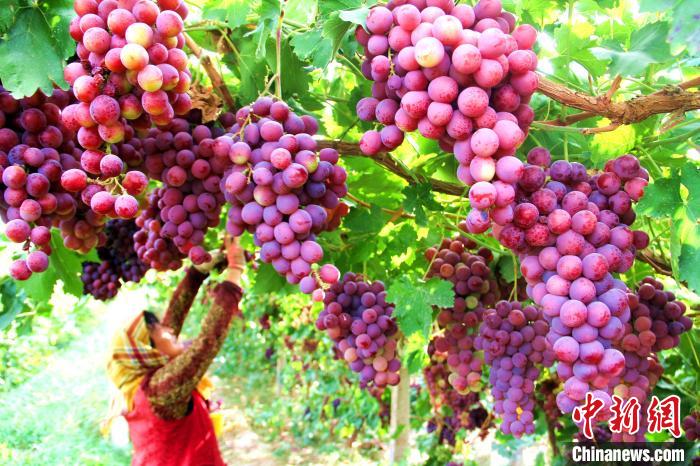 敦煌市莫高鎮農(nong)民在采摘葡萄。(資(zi)料圖)張(zhang)曉亮 攝
