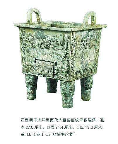 江西(xi)新干大洋洲商(shang)代大墓中出土的獸(shou)面(mian)紋青銅溫鼎