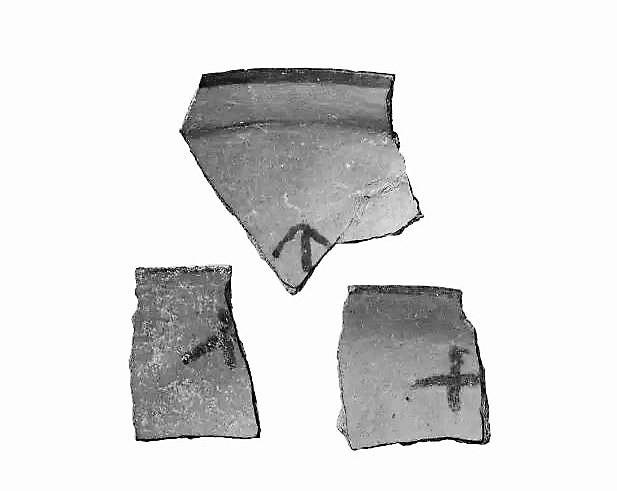 遺址中出土(tu)的(de)(de)帶有(you)彩繪符號的(de)(de)陶片。