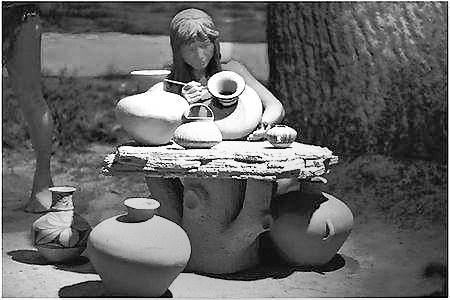 大地(di)灣(wan)博物館(guan)展廳中先民制作彩陶的場景(jing)。