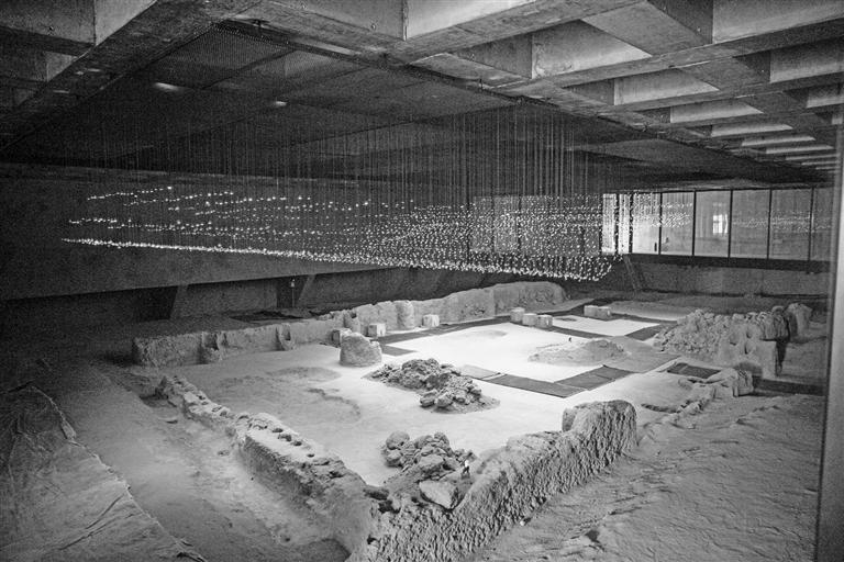 在遺(yi)址(zhi)的(de)(de)半(ban)山中心(xin)位(wei)置有一(yi)座(zuo)微微隆起的(de)(de)現代建筑(zhu)(zhu)(zhu),下(xia)面(mian)(mian)是被(bei)保護的(de)(de)大(da)型宮(gong)殿(dian)式建筑(zhu)(zhu)(zhu)——F901,該建筑(zhu)(zhu)(zhu)屬(shu)于第(di)四期(qi)文化,即仰(yang)韶晚期(qi),約(yue)距今5000年,是目前(qian)所見(jian)我國新石(shi)器(qi)時代面(mian)(mian)積最大(da)、工藝水(shui)平最高的(de)(de)房屋建筑(zhu)(zhu)(zhu)。F901以(yi)長(chang)方形主室為中心(xin),主室面(mian)(mian)積131平方米,東西(xi)中軸(zhou)線長(chang)16米、南北中軸(zhou)線寬8米。兩側擴展為與主室相通的(de)(de)東西(xi)側室,左右(you)對稱;主室后(hou)面(mian)(mian)設(she)單獨的(de)(de)后(hou)室,前(qian)面(mian)(mian)有附屬(shu)建筑(zhu)(zhu)(zhu),前(qian)后(hou)呼應、主次分明,形成一(yi)個結(jie)構復雜、布(bu)局嚴謹、占地總(zong)面(mian)(mian)積達420多(duo)平方米的(de)(de)建筑(zhu)(zhu)(zhu)群體(ti)。其居住面(mian)(mian)大(da)部分保存完好,以(yi)輕骨料(liao)、砂石(shi)、料(liao)姜石(shi)粉混(hun)凝而成的(de)(de)類(lei)似(si)現代水(shui)泥(ni)地面(mian)(mian),光(guang)潔而堅硬,它是大(da)地灣(wan)乃至(zhi)清水(shui)河沿岸的(de)(de)原始部落的(de)(de)公共活動中心(xin)——一(yi)座(zuo)宏偉而莊嚴的(de)(de)部落會堂。