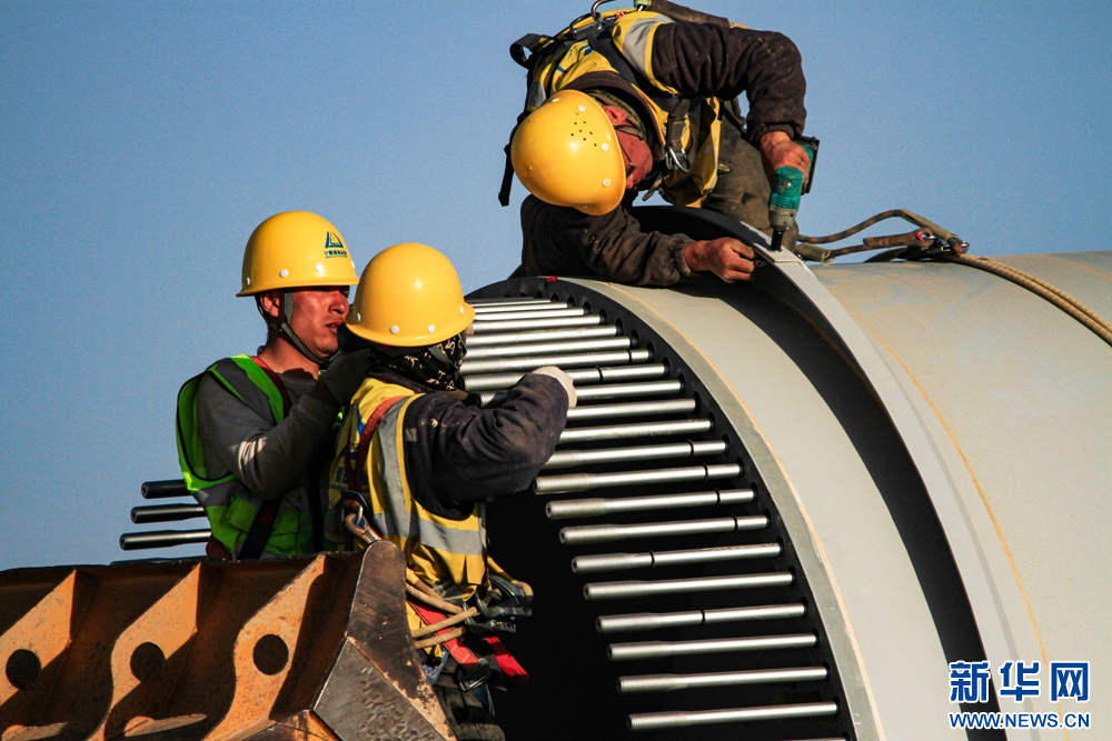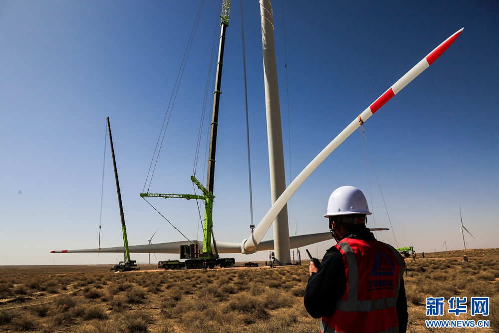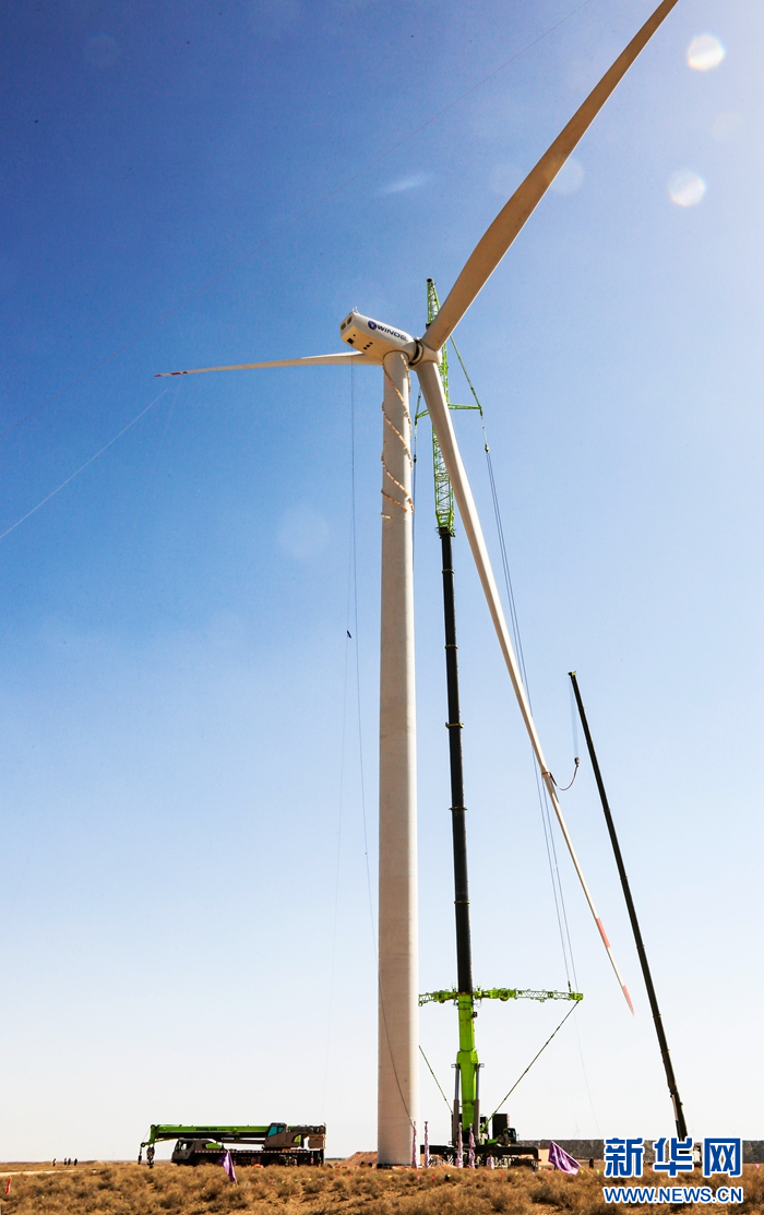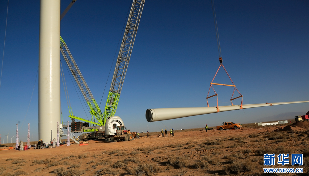 近日,在甘(gan)肅省(sheng)張掖(ye)市(shi)甘(gan)州區(qu)平山湖20千(qian)瓦風電施工現場(chang),工人們緊張有序地進(jin)行風電設備安(an)裝工作(zuo)。新(xin)華網發(陳禮 攝)