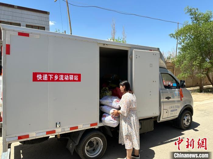 2023年(nian)7月14日,民眾(zhong)在敦煌快(kuai)遞下鄉流動驛站取件(jian)。(資(zi)料圖) 戴文(wen)昌(chang) 攝