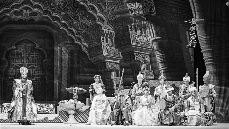 《玄奘西行》靠音(yin)樂的(de)轉換,把(ba)(ba)人(ren)物內(nei)心(xin)通(tong)(tong)過音(yin)樂表達出(chu)來,將人(ren)物的(de)心(xin)理變(bian)化賦(fu)予(yu)戲劇張力(li)。姜瑩給甘肅省(sheng)歌(ge)舞(wu)劇院演出(chu)的(de)《玄奘西行》專門配了一版交(jiao)(jiao)響樂的(de)伴(ban)奏,希望通(tong)(tong)過交(jiao)(jiao)響樂把(ba)(ba)底子鋪好,通(tong)(tong)過交(jiao)(jiao)響樂和民樂的(de)融合達到氣(qi)勢恢宏的(de)效果。