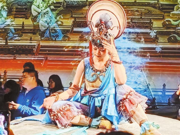 “真是一場(chang)酣暢(chang)淋漓的敦煌樂(le)舞盛宴(yan)。雖然這(zhe)趟旅程我(wo)們(men)還沒有去敦煌莫(mo)(mo)高(gao)窟(ku),但看(kan)罷(ba)這(zhe)場(chang)演出,已經對莫(mo)(mo)高(gao)窟(ku)壁(bi)畫有了初步的認知。莫(mo)(mo)高(gao)窟(ku)壁(bi)畫的精(jing)華部分,借助(zhu)高(gao)科(ke)技手(shou)段和(he)演員的精(jing)彩演繹,在我(wo)們(men)眼前立(li)體延展開(kai)來,同時劇場(chang)內大量復(fu)刻了佛龕、蓮花臺、藻(zao)井(jing)等特(te)色形制,讓我(wo)們(men)‘一眼入境’,帶(dai)我(wo)們(men)走進歷史深(shen)處,觸摸文(wen)明(ming)脈動(dong)。”浙江(jiang)游客王(wang)松攜家(jia)人觀看(kan)《樂(le)動(dong)敦煌》后,發出贊嘆。