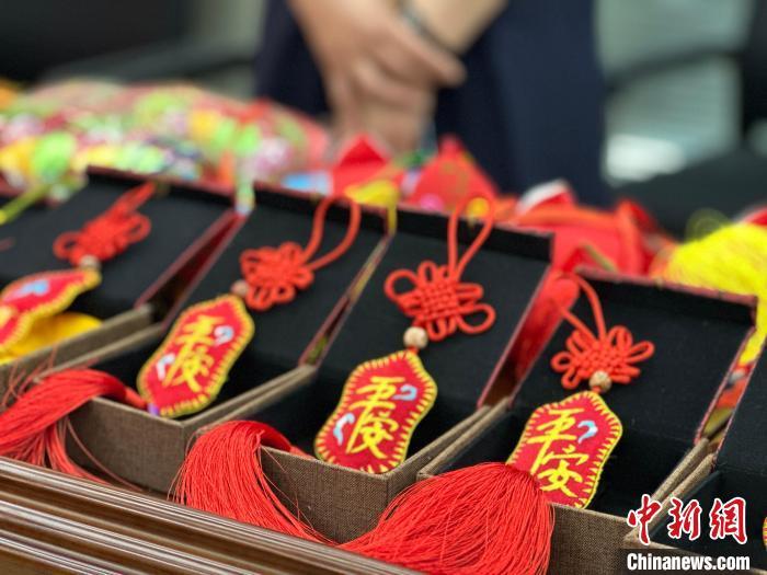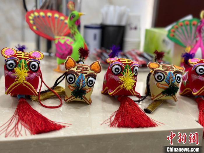 5月(yue)7日(ri),“甘肅省2024年‘文(wen)化(hua)和自然遺(yi)(yi)產日(ri)’非(fei)遺(yi)(yi)宣傳展示(shi)展銷主會場(chang)系(xi)列活(huo)動暨(ji)第十九屆(jie)慶陽香包民俗文(wen)化(hua)節”新聞發布(bu)會舉行。圖為發布(bu)會現場(chang)展示(shi)的香包制品。楊娜(na) 攝