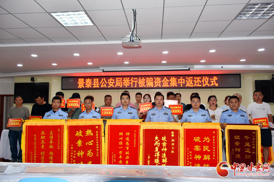 中國甘肅網7月10日訊(西(xi)北(bei)角·中國甘肅網記者程健)7月9日下午,白(bai)銀市景泰縣(xian)公(gong)安局舉行被騙涉案(an)資金集中返(fan)還(huan)(huan)儀式,返(fan)還(huan)(huan)群眾被騙資金46.38萬(wan)余元。