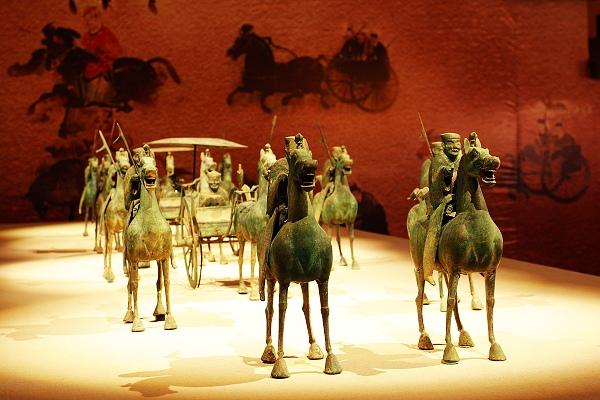 武威雷臺漢墓出(chu)土的銅車馬儀仗。