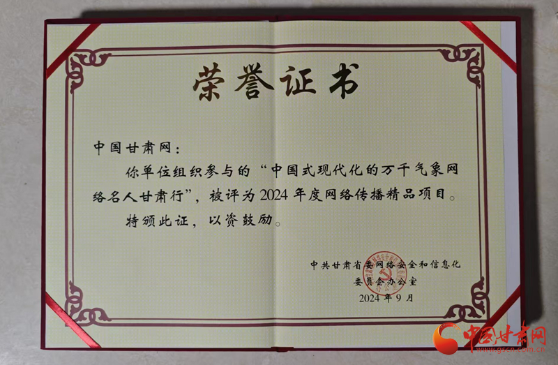當(dang)天(tian)下(xia)午頒發了甘肅省優(you)秀網(wang)絡(luo)(luo)(luo)媒體(ti)、網(wang)絡(luo)(luo)(luo)評論(lun)品牌(pai)欄(lan)目(mu)等七類(lei)獎項,其中(zhong)中(zhong)國甘肅網(wang)被(bei)授予“優(you)秀網(wang)絡(luo)(luo)(luo)媒體(ti)”,《飛天(tian)評論(lun)》欄(lan)目(mu)獲(huo)得“2024年度網(wang)絡(luo)(luo)(luo)評論(lun)品牌(pai)欄(lan)目(mu)”獎項,《一生擇一事》欄(lan)目(mu)被(bei)評為“2024年度網(wang)絡(luo)(luo)(luo)傳播(bo)品牌(pai)欄(lan)目(mu)”。